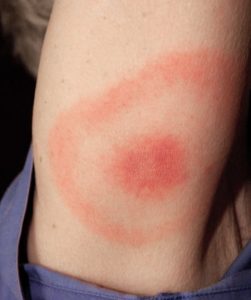 Изображение 3. Мигрирующая эритема при клещевом боррелиозе. (источник: Centers for Disease Control and Prevention)
